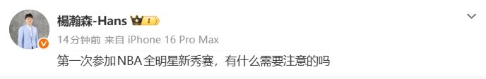 彩经网彩票走势图大全-在线等!杨瀚森:第一次参加NBA全明星新秀赛 有什么需注意的吗? 频道:法甲 日期:2026-03-17 浏览:42 1月27日讯 此前,NBA官方公布了今年NBA新秀赛的完整名单,杨瀚森以G联盟球员身份入选。杨瀚森更新个人微博写道:“第一次参加NBA全明星新秀赛,有什么需要注意的吗?” 上一篇:彩经网彩票走势图大全-塔图姆瞄准周六复出!绿军登顶东部赔率升第一 相关文章 彩经网彩票走势图大全-在线等!杨瀚森:第一次参加NBA全明星新秀赛 有什么需注意的吗? 彩经网彩票走势图大全-塔图姆瞄准周六复出!绿军登顶东部赔率升第一 CBA第一阶段排名:广厦领衔争冠集团 北京意外掉队辽宁战绩暴跌 彩经网官网首页-国足遭连追2球2-2乌兹别克!1国脚犯规染红,邵佳一上任后3场不败